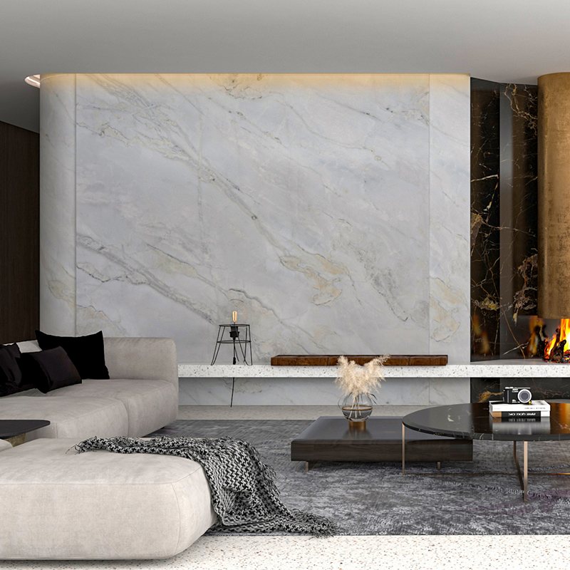 A Evolução do BrancoEmbora os mármores brancos puros continuem populares, o Galaxy White introduz uma nova camada de complexidade. Os sutis e quentes tons de dourado impedem que ele pareça frio ou estéril, tornando-o incrivelmente versátil para designs modernos e clássicos.